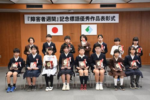 障害者週間(12月3日~9日)を記念し、障がい者福祉をテーマにした標語を市内の小学5・6年生から募集したところ、1,481点の応募があり、審査の結果、16作品を優秀作品として選考し、12月6日(土曜日)に表彰式を行いました。優秀作品については、以下のとおりです。