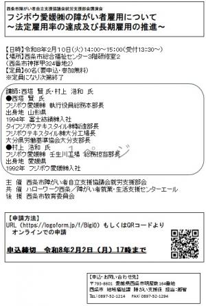 令和7年度 西条市障がい者自立支援協議会就労支援部会 講演会「フジボウ愛媛(株)の障がい者就労への取り組みについて」を開催します