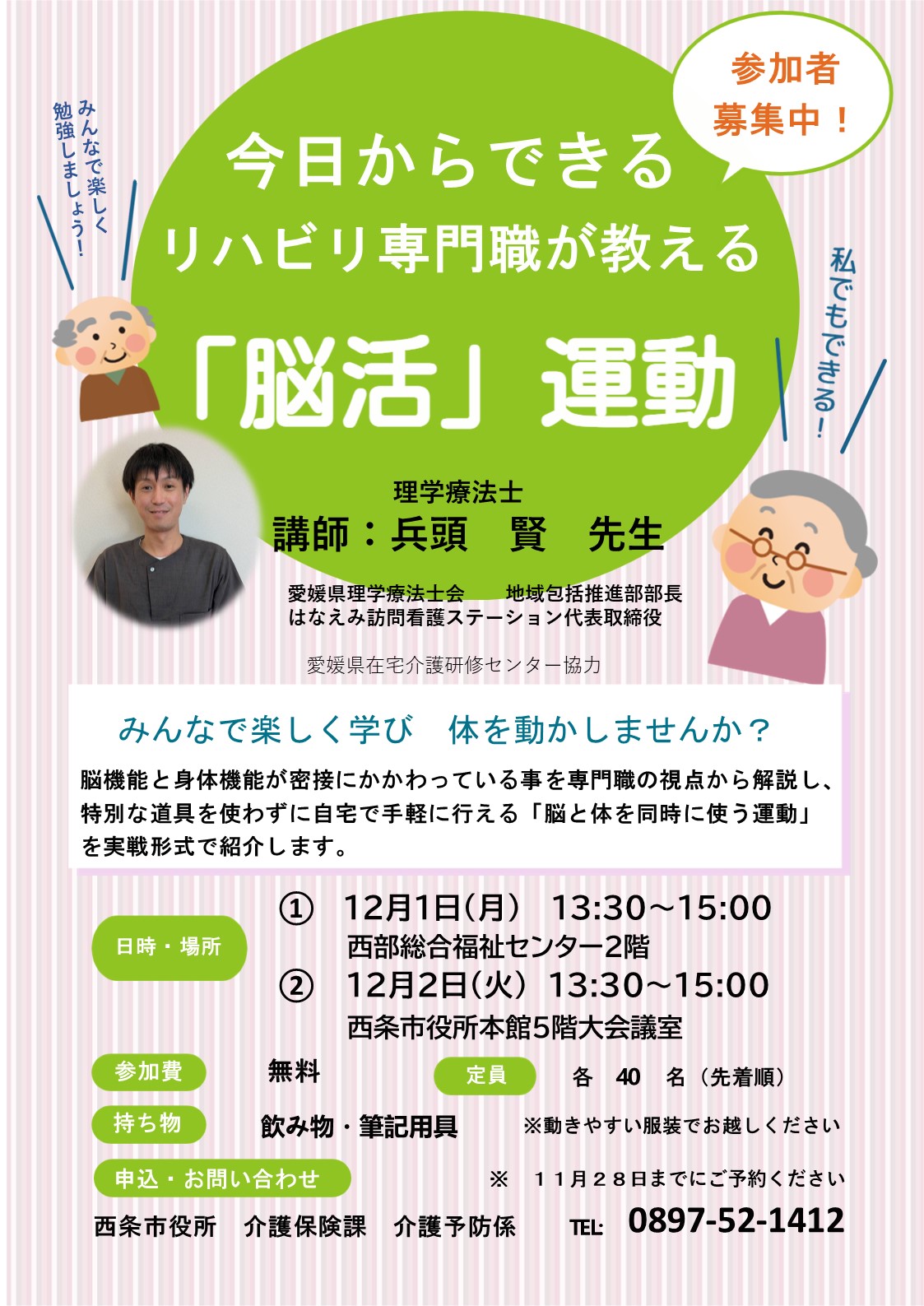 ~R7年度西条市認知症講演会のご案内~ 『今日からできる!リハビリ専門職が教える「脳活」運動』