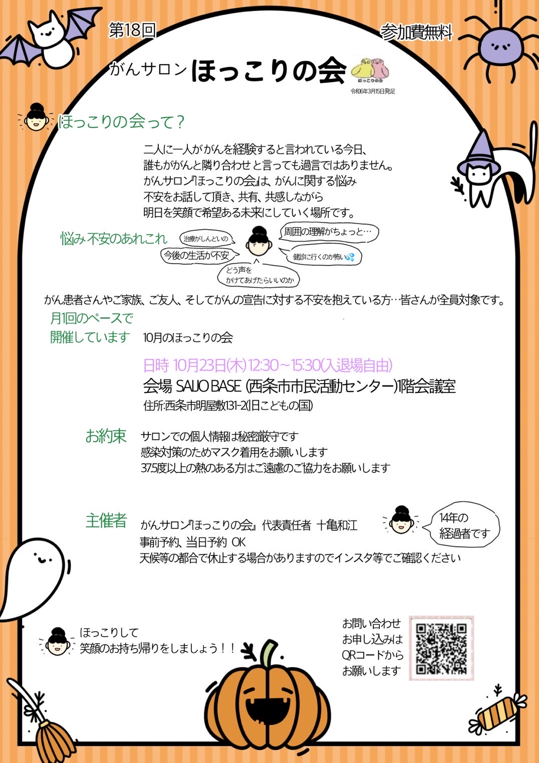 がん患者さんやご家族・ご友人の方々が抱えているいろいろな思いを、体験者と共有や共感しながら、お話しできる場です。