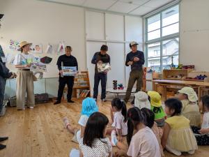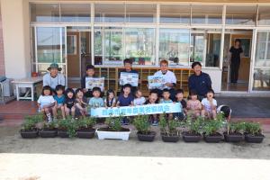 児童・園児たちは、会員から花を育てる大切さを学び、農業者が花を育て店頭に並ぶまでの説明を受けました。