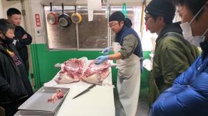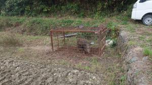 また、罠の組み立て研修に参加し、実際に捕獲したイノシシの止め刺しと解体を行いました。