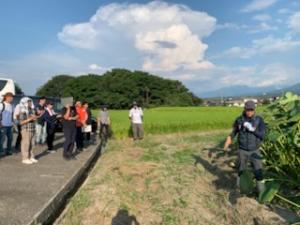県内他市町の青年農業者と合同で県内の圃場を視察し、各圃場の生産者から日々意識して実践している取り組みや工夫を学び、得られた知見をもとに、会員の営農に活かす研修会を開催しています。