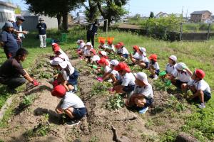 神戸小学校3年生、国安小学校2年生を対象に、さつまいもの芋づる定植を実施。