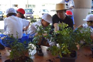 市内小学校・幼稚園の児童・園児を対象に、バラの定植を実施。